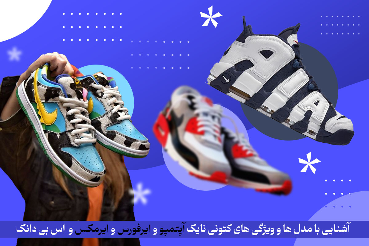 آشنایی با مدل ها و ویژگی های کتونی نایک آپتمپو و ایرفورس و ایرمکس و اس بی دانک